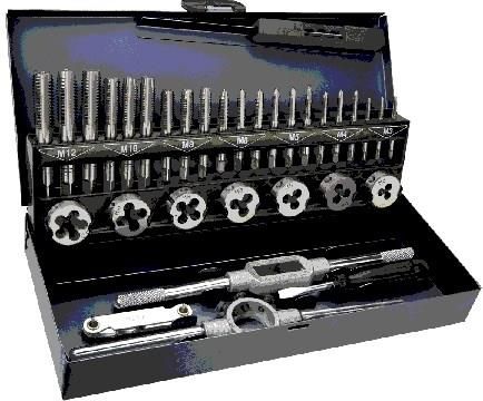 Narzynki i gwintowniki M3-M12 zestaw 32 sztuki w metalowej kasecierenomowanej firmy TOPEX14A426Charakterystyka :32-częściowy zestaw narzynek i gwintowników TOPEX to rewelacyjne rozwiązanie dla każdego.W poręcznej walizce znajdują się pokrętło do gwintowników oraz oprawka do narzynek.Ponadto narzynka i gwintowniki wykonane są ze stali wolframowej wysokiej jakości, zgodnie z normą DIN 233 oraz DIN 352,co jest gwarantem niezawodności.Dane techniczne:Narzynki i gwintowniki M3-M4-M5-M6-M8-M10-M12, zestaw 32 szt., stal wolframowa, DIN352 / DIN233,metalowa kaseta do przechowywania, przymiar do gwintów, wkrętak do mocowania narzynek.W zestawie otrzymujesz :- Zestaw gwintowników i narzynek w metalowej walizce