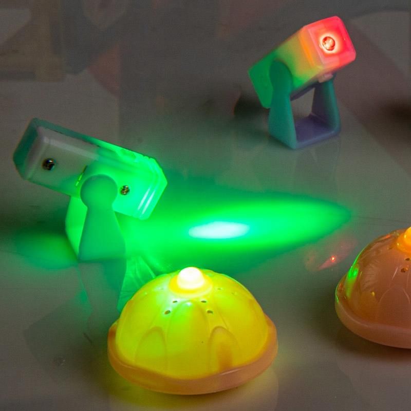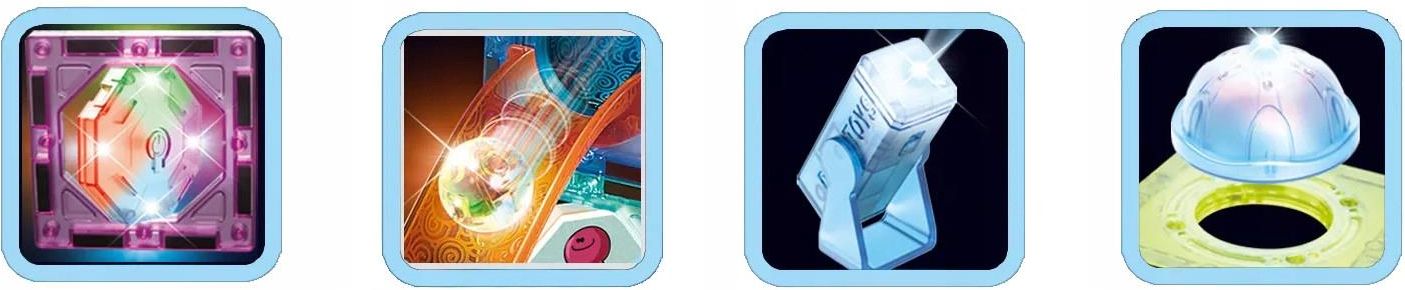 - Świecące kulki, elementy klocków oraz osobne reflektory,