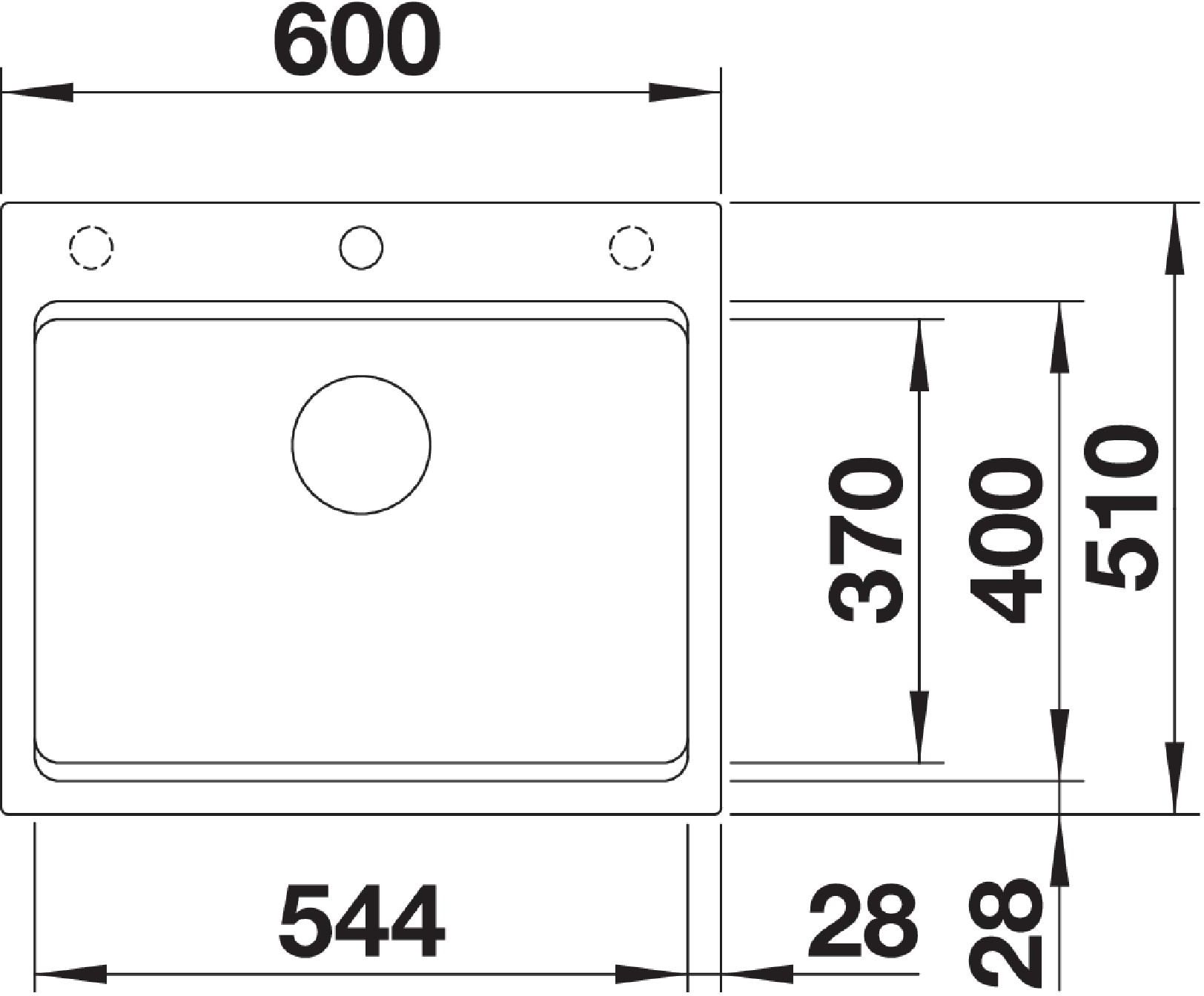 - Zlewozmywak wpuszczany w blat, z elegancką krawędzią o niskim profilu i długą listwą na baterię